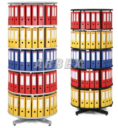 Archivační systém, který Vám ušetří prostor při archivaci Vašich písemností. Díky otočnému mechanismu lze uspořádat až 120 pořadačů jen na polovině čtverečního metru, zatím co při běžném použití archivační skříně potřebujete prostor cca o 65 % větší. Výška stojanu je 200 cm.