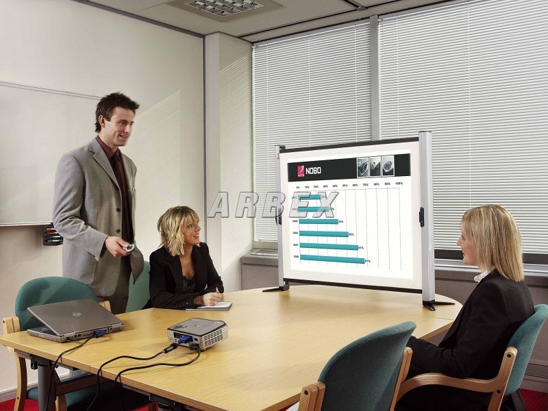 Srolovatelné do integrovaného kovového pouzdra. Uhlopříčka 125 cm (širokouhlý formát 4:3). Rozměr 100x75 cm. Ultralehká hliníková konstrukce (méně jak 3 kg) Originální zpevňovací systém na zadní straně plátna. Ergonomicky tvarované držadla pro snadný transport a instalaci. Lehce otočné samouzamikací opěrky zaručující maximální stabilitu. Matně bílý povrch plátna z materiálu se zvýšenou odolností vůči ohni. Pevné přenosné pouzdro s popruhem přes rameno. Rozměr 100 x 75 cm.