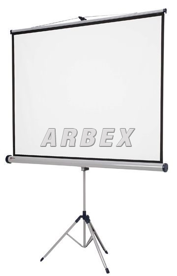 Mobilní projekční plátno vhodné pro všechny druhy projekce. Velmi stabilní základ na třech nohách, širokoúhlý formát 4:3, matně bílé s černým orámováním.