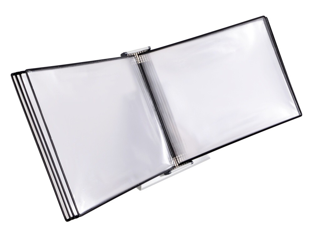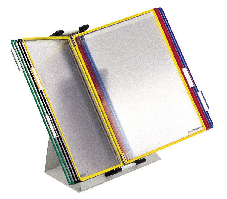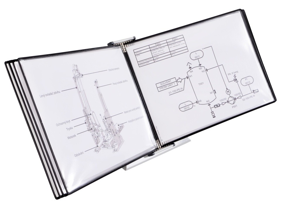Pultový kovový stojan pro uchycení 30 kapes s úchyty A4 na výšku nebo A3 na šířku. Protiskuzový podstavec dává stojanu velkou stabilitu. Je vhodný na každý kancelářský stůl, pracovní plochu, pult recepce - informace jsou vždy a rychle přístupné. Součástí stojanu jsou 4 aretační zarážky, které zajišťují správné držení kapes. Kapsy s úchyty nejsou součástí dodávky a je nutné dokoupit samostatně. Barva: světle šedá RAL 7035