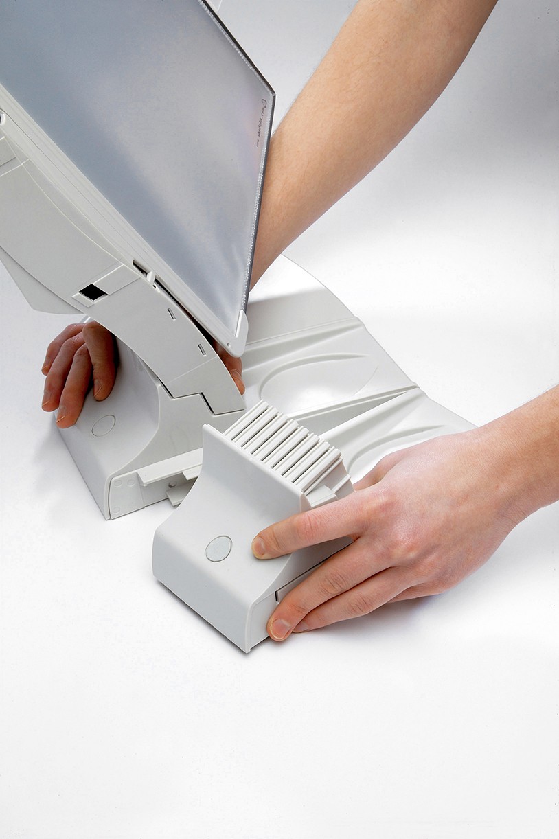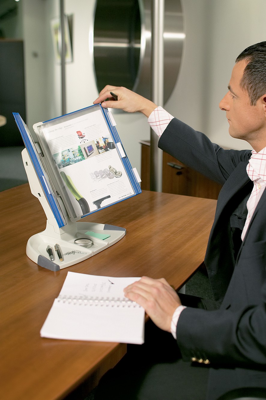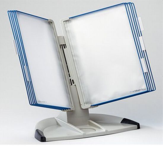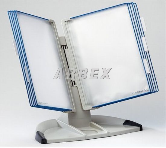 Elegantní plastový pultový stojan Design s 10 kapsami A4. Stojan je vyroben z odolného ABS plastu. Je vhodný pro umístění do kanceláří, na recepce, do vstupních hal, čekáren apod. Díky multifunkčnímu podstavci je velmi stabilní a obsahuje místo na uložení kancelářských doplňků. Jednoduché vložení a vyjmutí kapes pomocí úchytů a integrované zarážky pro optimální rozevření kapes. Kapsy Design s plastovými úchyty jsou vyrobeny z ekologicky šetrného polypropylenu. Barevný rámeček je uvnitř zpevněn kovovým drátem, který zajisťuje stálý tvar a pružnost lemu. V kompletu jsou plastové indexové záložky (rozměr: 5 cm), 5 ks. Lze neomezeně rozšiřovat jeho kapacitu přikoupením plastového dílu pro rozšíření držáku Design. Barva rámečku: modrá.