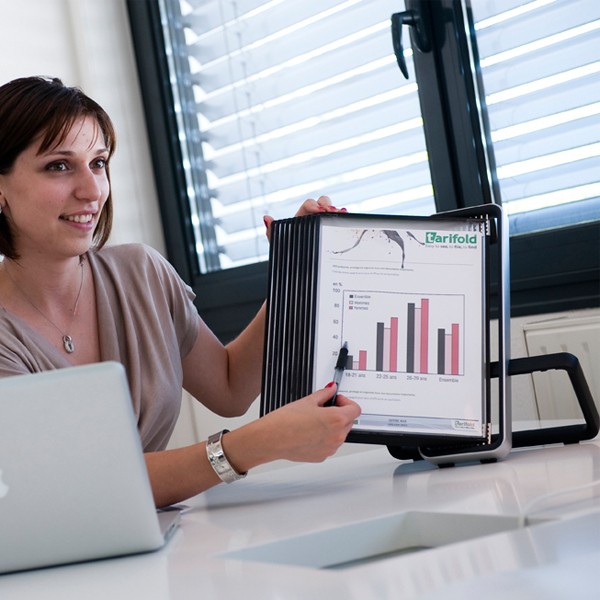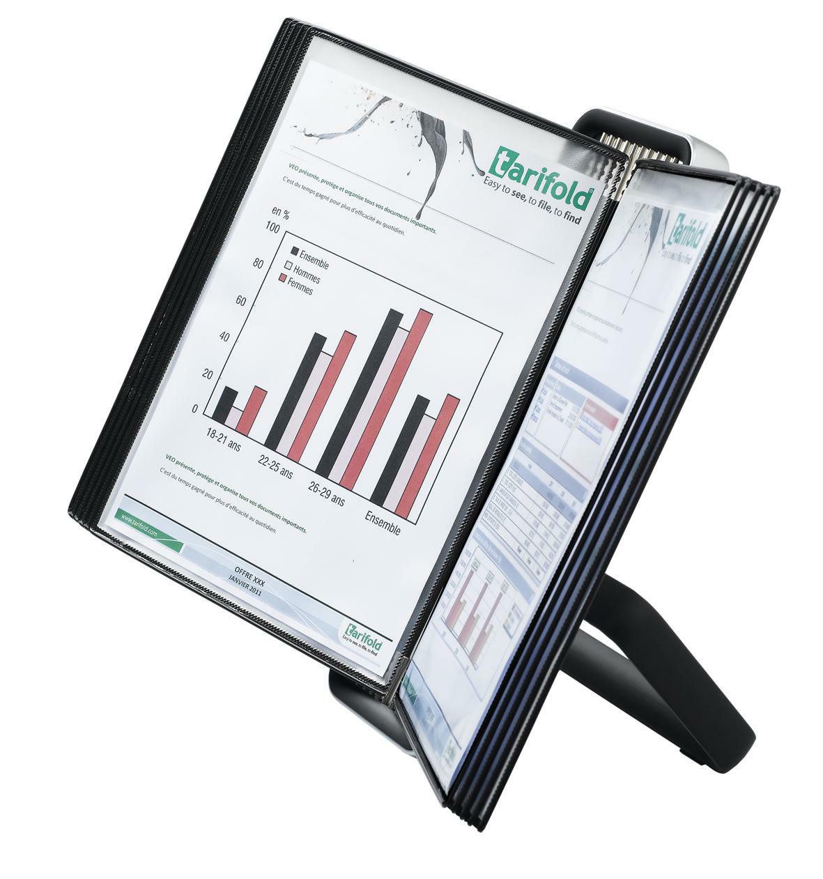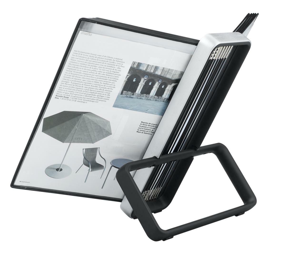VEO pultový stojan s velmi stabilní kovovou konstrukcí v zajímavém minimalistickém designu. Jednoduché vložení a vyjmutí kapes pomocí úchytů. Dodáván včetně 10 černých kapes formátu A4. Kapsy s úchyty jsou vyrobeny z ekologicky šetrného polypropylenu. Rámeček je uvnitř vyztužen ocelovým drátem, kapsa je pružná a tvarově stabilní. Držák lze umístit na pulty, stoly reprezentativních míst. Podstavec vybaven protiskluzovými podložkami. Barva displeje i rámečků: černá. Unikátní balení v atraktivním archivačním boxu.