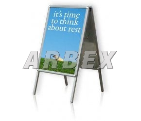 A reklamní stojan. Ideální pro všechny velikosti plakátů, eloxovaný hliník. Klip rám .. Průhledná krycí antireflexní fólie.