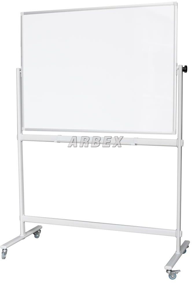 Oboustranná tabule na mobilním stojanu se čtyřmi pojezdovými kolečky a aretací je horizontálně otočná a vhodná pro kanceláře.