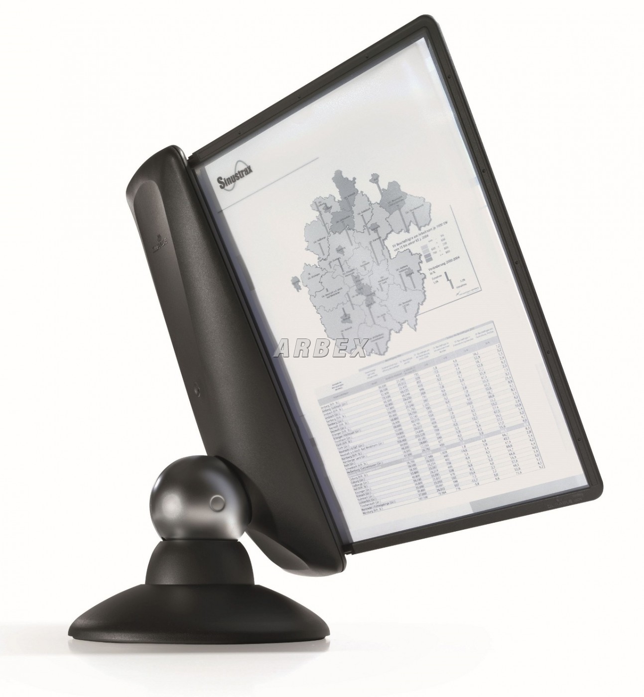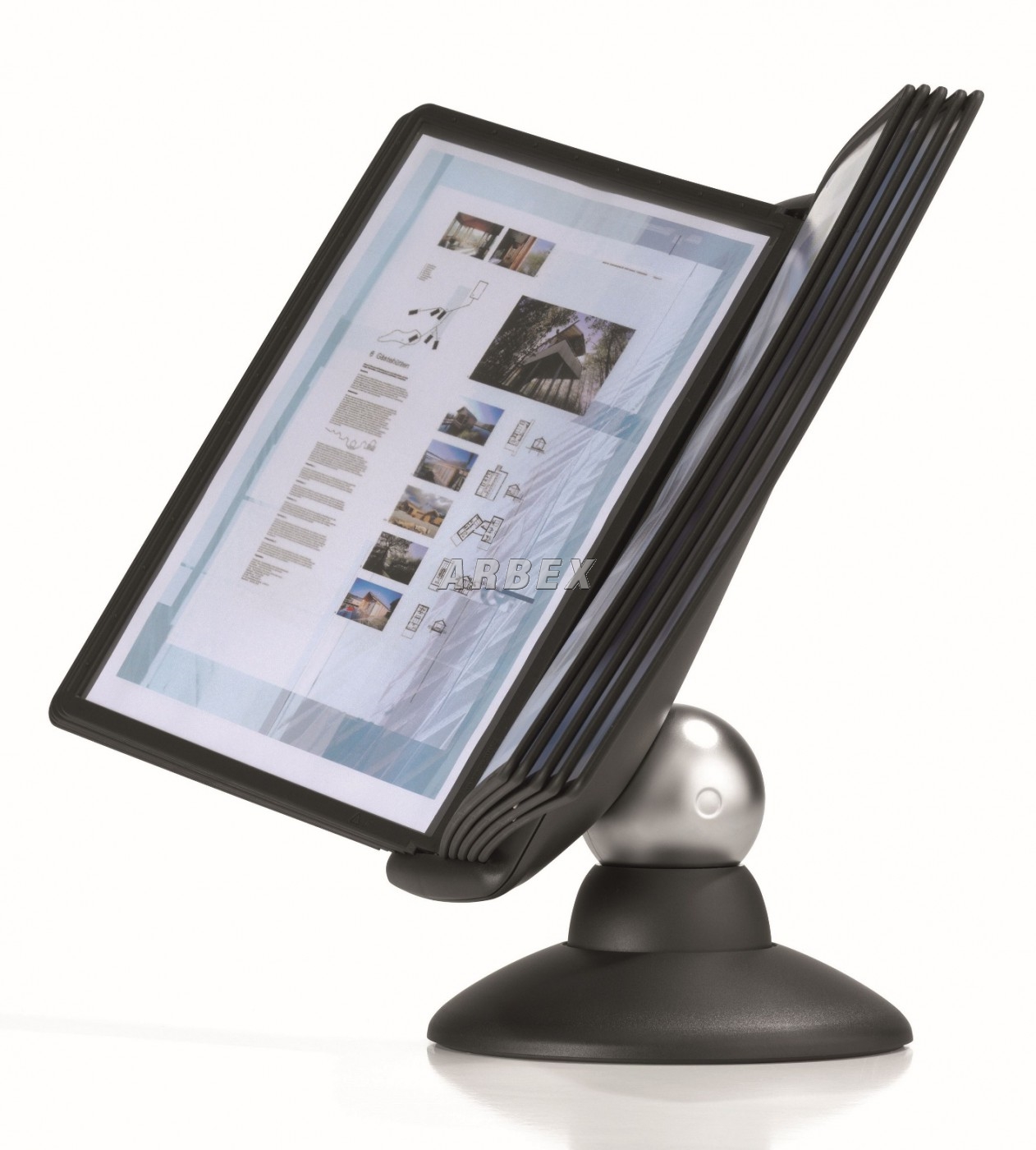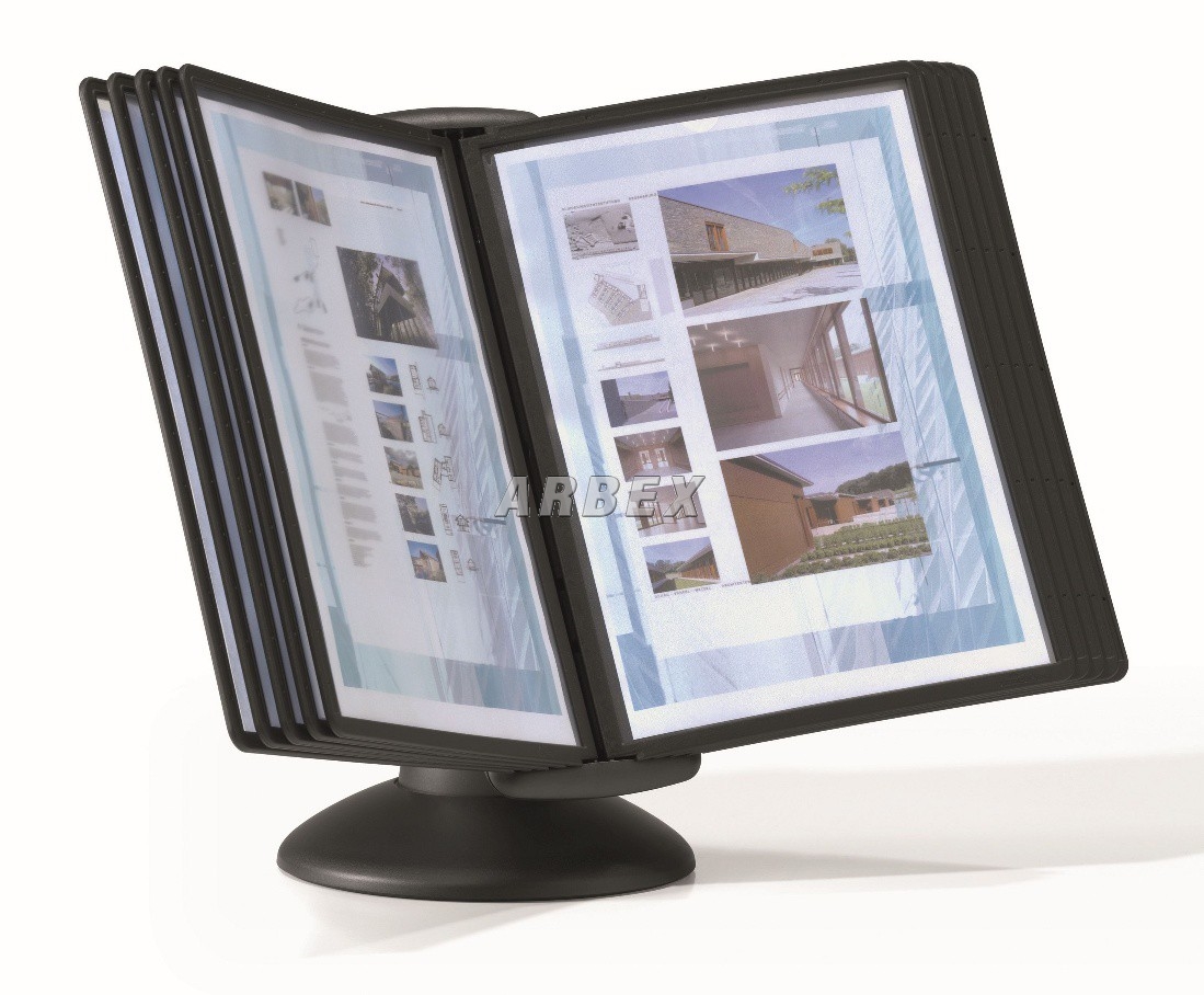 Moderní, stylový, vysoce funkční stojan s prezentačními panely, speciální otočný mechanismus umožňuje snadnější dostupnost používaných dokumentů, obsahuje 10 panelů. Barva černá.