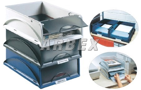 Pro ukládání dokumentů A4. Přední průhledná odklápěcí stěna chrání a skrývá obsah odkladače. Lehce se odklápí, může být zafixována v otevřené poloze a pokud ji nechcete vůbec, je možné ji zcela odstranit. Lehce snímatelný průhledný rozlišovač s popisovatelným papírovým štítkem.
