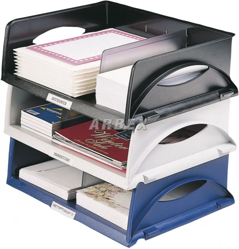 Pro ukládání dokumentů A4 na šířku. Dodáván s průhledným rozdělovačem pro vytvoření dvou menších přihrádek pro obálky, letáky, bločky, a jiné drobné kancelářské potřeby. Možnost přepažení odkladače až na 4 přihrádky (náhradní balení rozdělovačů v nabídce samostatně). Lehce snímatelný průhledný rozlišovač s popisovatelným papírovým štítkem. Rozměry: 40 x 12,5 x 29,5 cm (š x v x h)