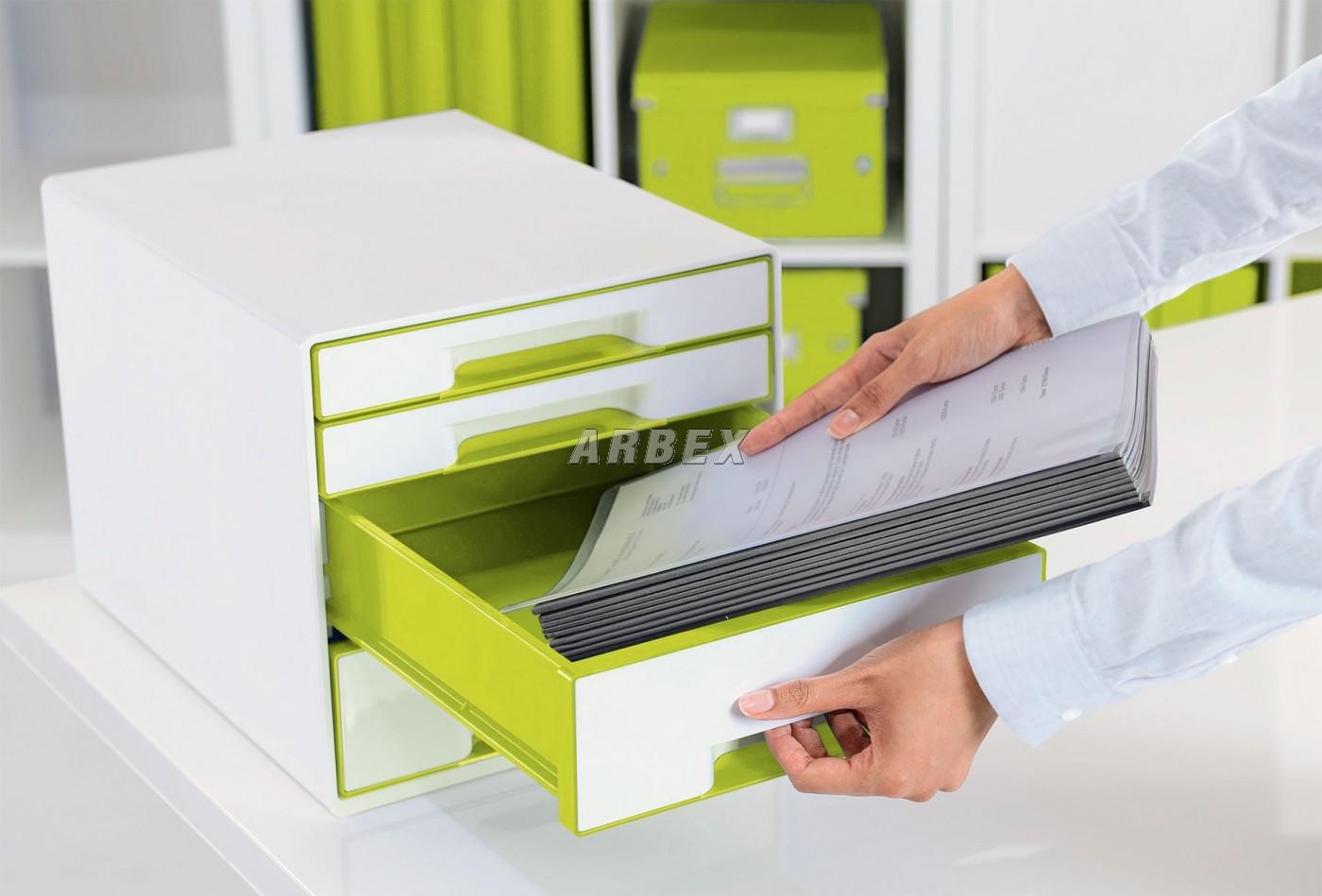 - Otvor ve spodní části šuplíku umožňuje nadzvednutí papírů a snadné vyhledávání v nich