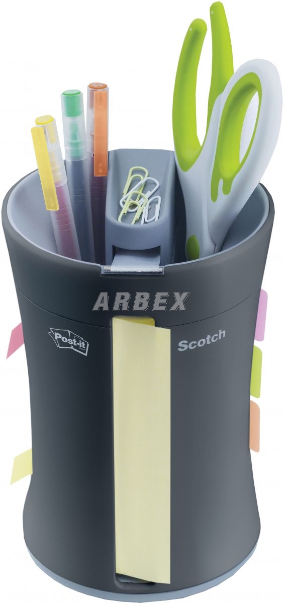 Kompaktní stolní organizér. Dodává se včetně příslušenství: 2x bločky, 2x záložky, 1x silné záložky, 1x páska Scotch Magic.
