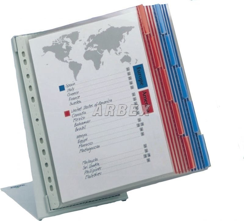 Kovový stabilní stojan ve tvaru „L“, umožňující snadnou manipulaci. Kompletní sada včetně 10ti rámečků A4, (po 5 kusech v červené a modré). Vhodný pro dílny a sklady. Rámeček s univerzálním euroděrováním pro pořadače a kroužkové desky. Ocelový plech potažený plastem odolným proti poškrábání. Rámeček 5607.