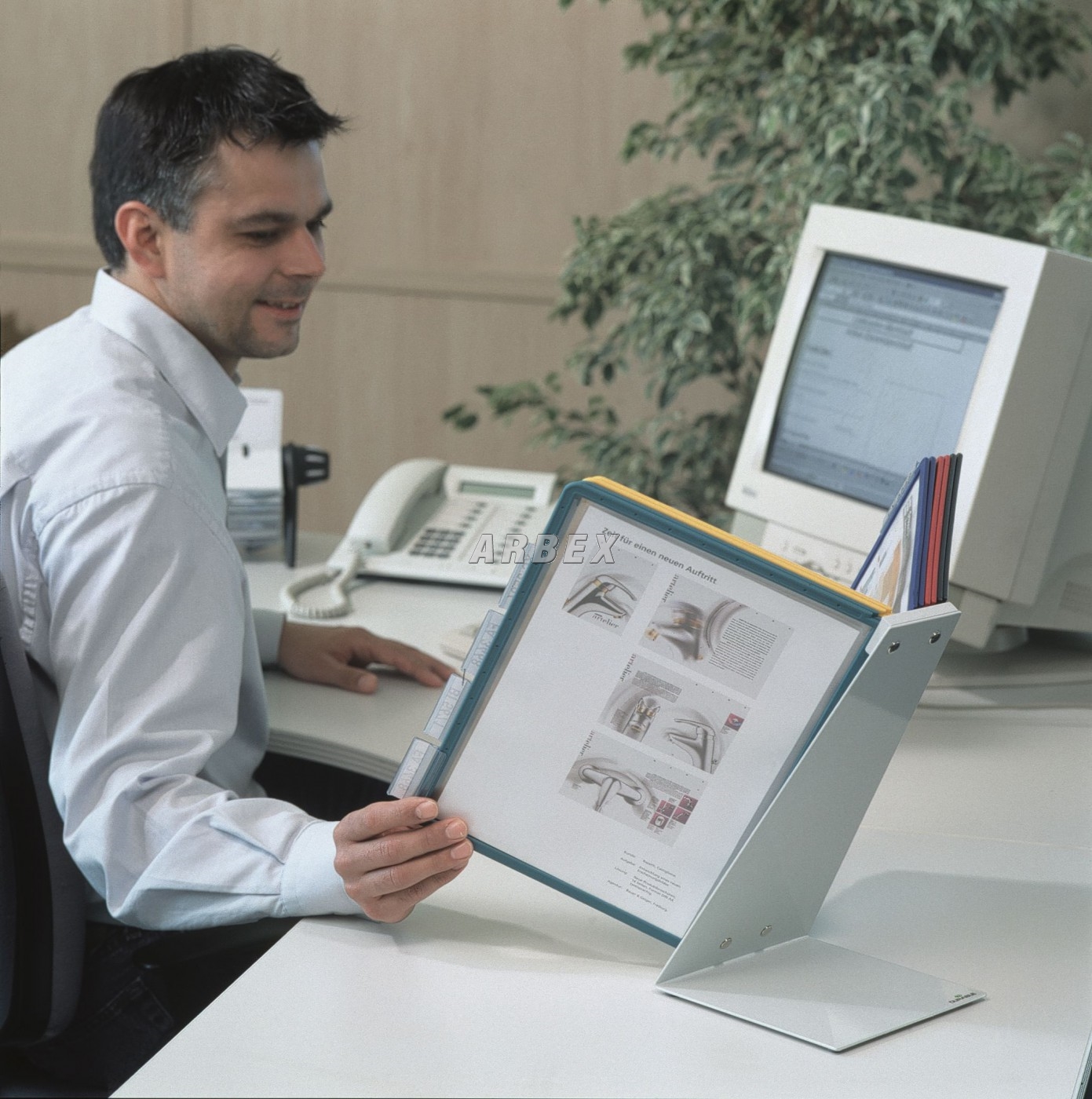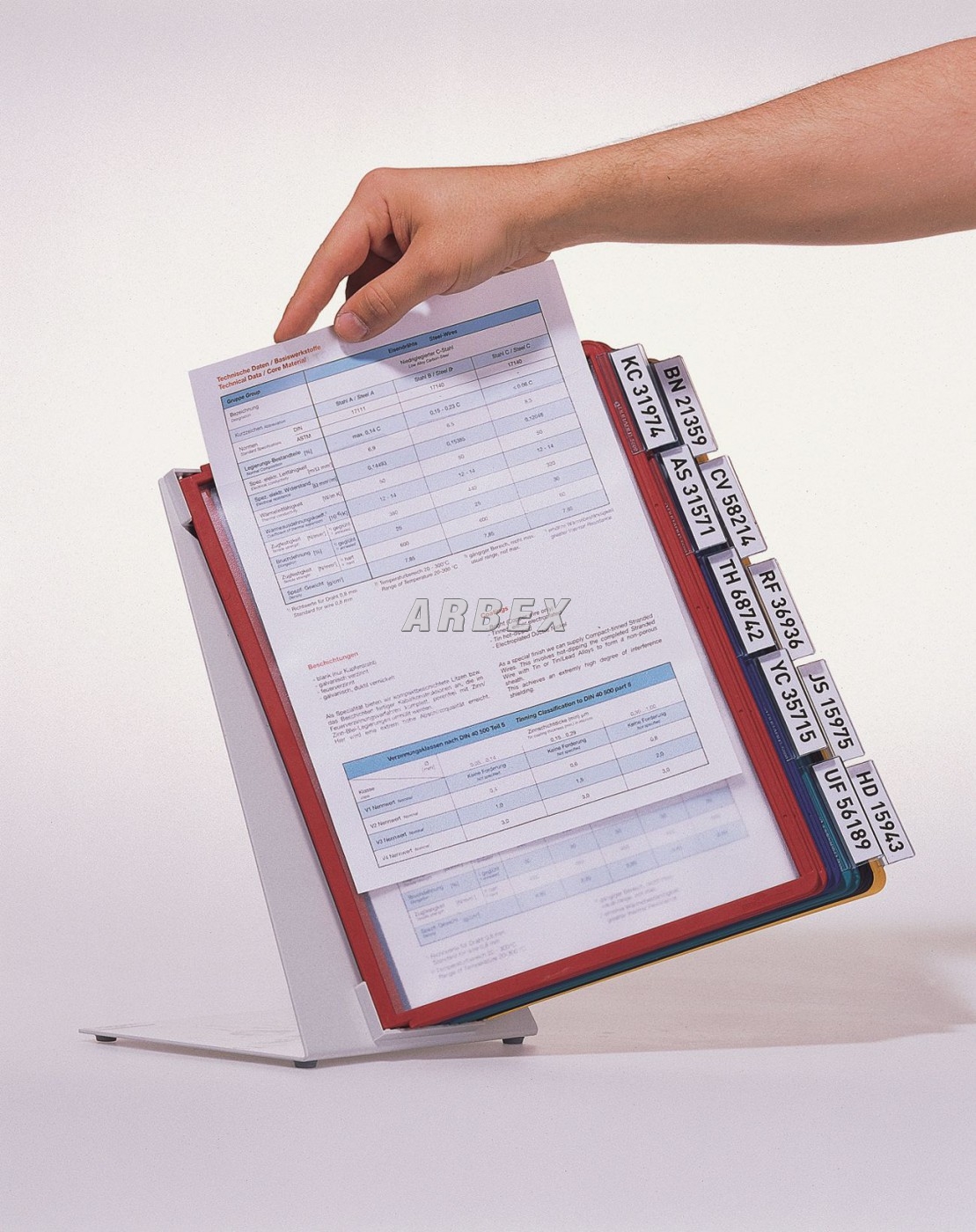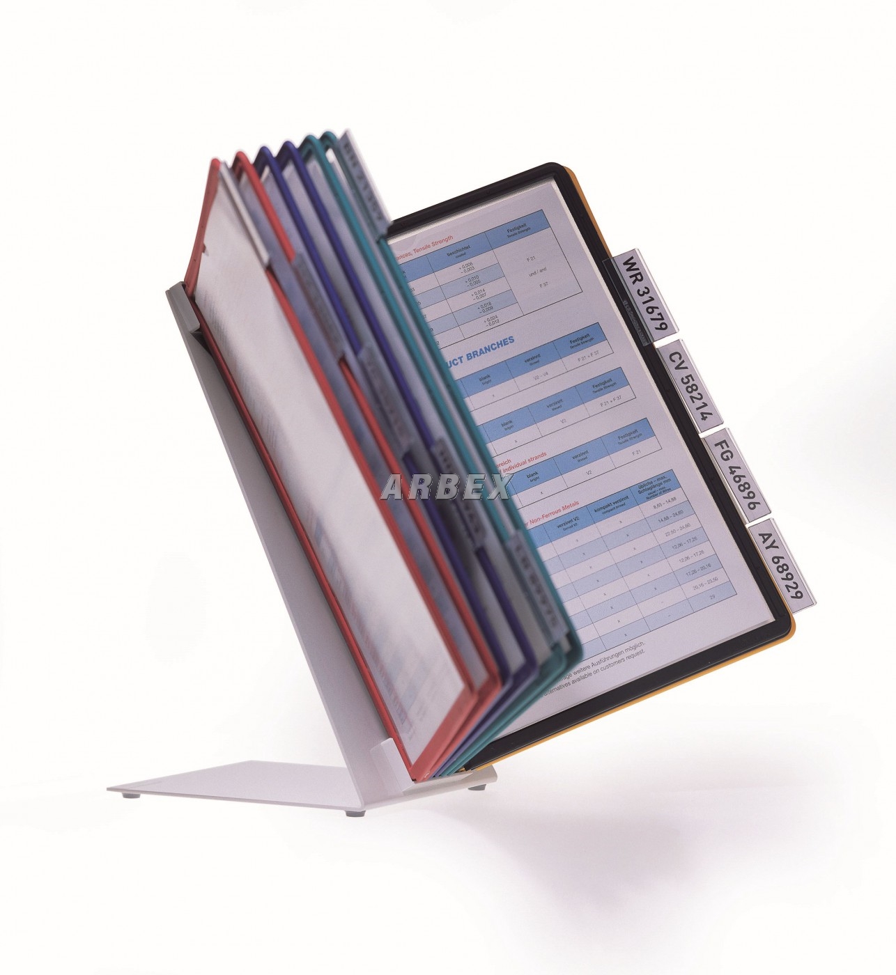Stolní stabilní kovový stojan ve tvaru písmena L. Povrchová úprava speciálním plastovým povrchem odolným proti poškrábání. Kompletní sada včetně 10ti barevných panelů s bočními ozlišovači a popisovatelnými štítky. Snadné listování a vyhledávání založených dokumentů. Rámečeky v barevném mixu po 5ti barvách. Náhradní rámečky Sherpa 5606.
