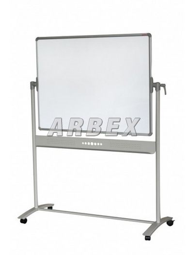 Magnetická otočná, oboustranně popisovatelná tabule na mobilním kovovém stojanu.