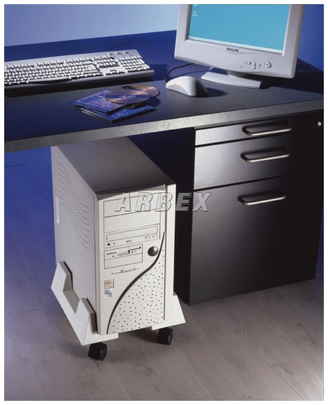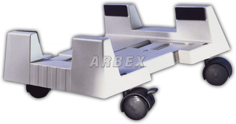Univerzální stojan s nastavitelnou šířkou od 15 cm do 26 cm pro jakýkoliv počítač. Snadno přemístitelný díky kolečkům. Drží počítač ve vertikální poloze pro úsporu místa a zároveň brání jeho přímému dotyku s podlahou. Pevná plastová konstrukce zaručuje stabilitu. Šedá barva. Rozměry (v x š x h) 12 x 24,5-35 x 30,5 cm.