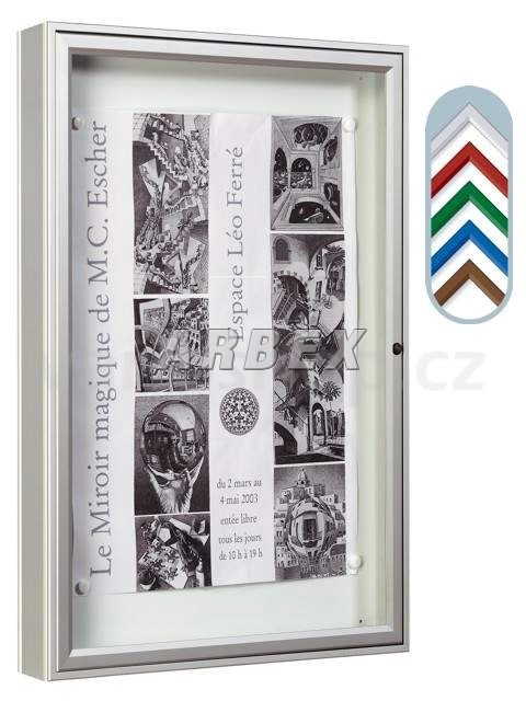 Jednostranná venkovní vitrína. Možnost upevnění na stěnu nebo na sloupky Quatro. Kombinací se sloupkem Quatro Plus lze sestavit stěnu z volně stojících nástěnek v exteriéru.