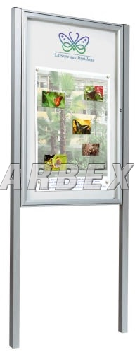 Jednostranná venkovní vitrína. Možnost upevnění na stěnu nebo na sloupky. Kombinací se sloupkem 40x60 PLUS lze sestavit stěnu z volně stojících nástěnek v exteriéru.