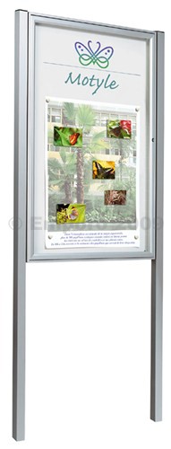 | Souprava 2 krajních hliníkových sloupků pro vitríny Tradition, Classique , pro přímé zapušténí do betonu. Barva stříbrná nebo RAL: bordó 3004, zelená 6005, modrá 5010, hnědá 8017. |