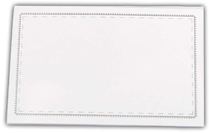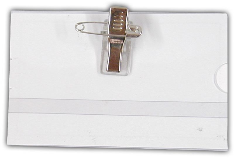 Tuhá, čirá visačka z PVC. Uchycení na oděv pomocí klipsy nebo zavíracího špendlíku. Rozměr 60x90 mm.