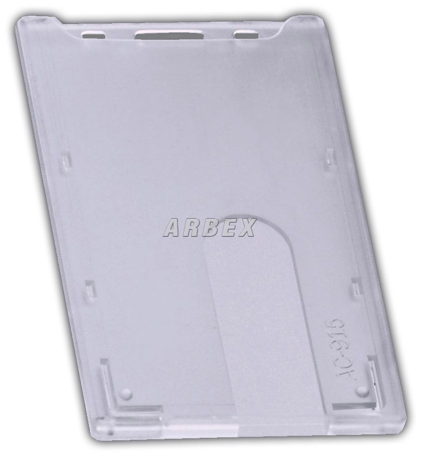 Tuhá plastová visačka pro magnetické karty 54×86 mm – svislá, provedení z průhledného polomatného plastu. Možno zavěsit na klip nebo řetízek. Balení 50 ks.