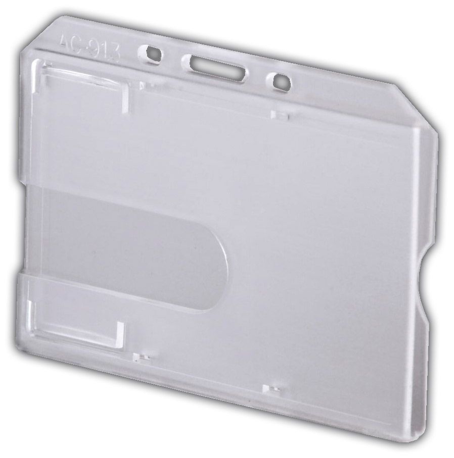 Tuhá plastová visačka pro magnetické karty 54×86 mm – vodorovná, provedení z průhledného polomatného plastu. Možno zavěsit na klip nebo řetízek. Balení 50 ks.