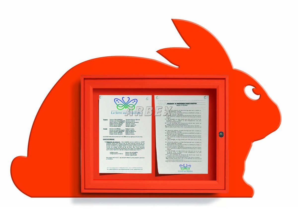 Jednostranná venkovní vitrína s dětským motivem v pozadí. Vitrína i motiv jsou lakovány práškovou vypalovanou barvou.