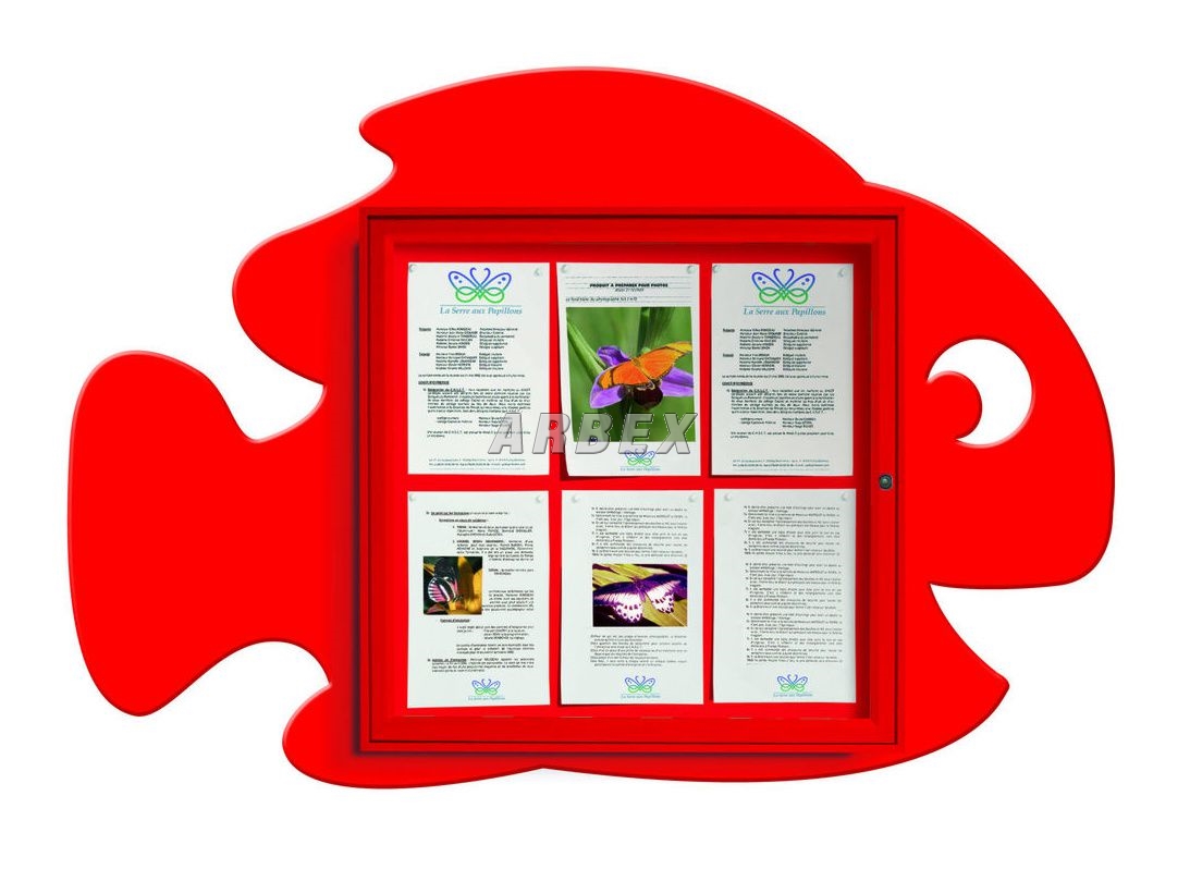 Jednostranná venkovní vitrína s dětským motivem v pozadí. Vitrína i motiv jsou lakovány práškovou vypalovanou barvou.