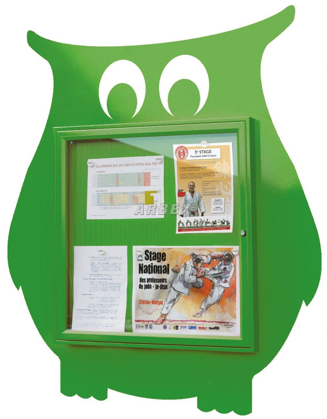 Jednostranná venkovní vitrína s dětským motivem v pozadí. Vitrína i motiv jsou lakovány práškovou vypalovanou barvou.