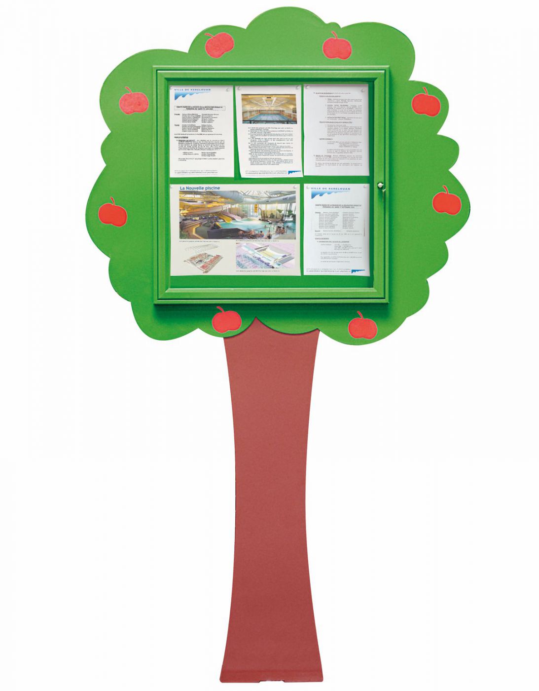 Jednostranná venkovní vitrína s tématickým motivem v pozadí. Vitrína i motiv jsou lakovány práškovou vypalovanou barvou.