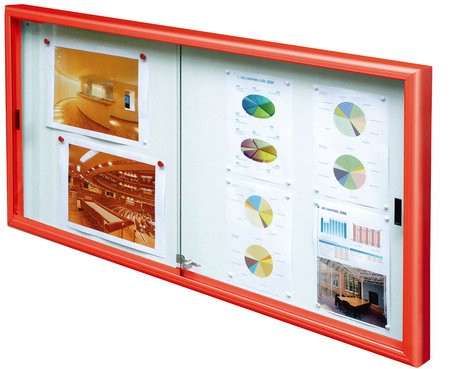 Jednostranná vitrína. Hliníkový rám. Posuvné dveře.