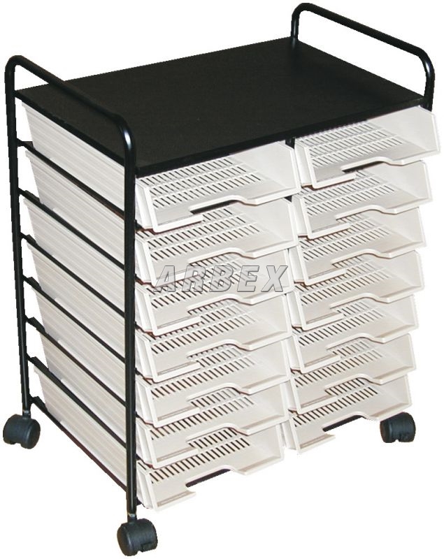 Díky 14ti plastovým přihrádkám je vhodný zejména pro pracoviště s větší potřebou třídění materiálů. Rozměr (š x v x h) 55,5x69,5x34 cm. Dodává se bez zásuvek. Cena nezahrnuje zásuvky. Barva černá.