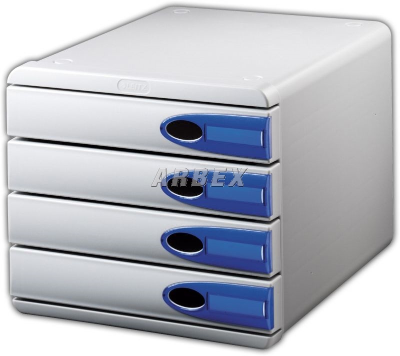 Vyrobený z kvalitního plastu. Možnost stohování (až 3 boxy na sebe) nebo jeho pověšení na stěnu. Zásuvky jsou uzavřené. Součástí balení jsou gumové podložky pro lepší stabilitu a ochranu nábytku a popisovatelné papírové štítky. Přímá náhrada za zásuvkový box Esselte Intrica. Pro ukládání dokumentů do formátu A4+. Jednoduchý posun zásuvek se zarážkami, proti jejich úplnému vysunutí. Na každé zásuvce výřez pro snadné vysunutí zásuvky. Rozměry: 275 x 245 x 345 mm. 4 zásuvky výšky 48 mm.