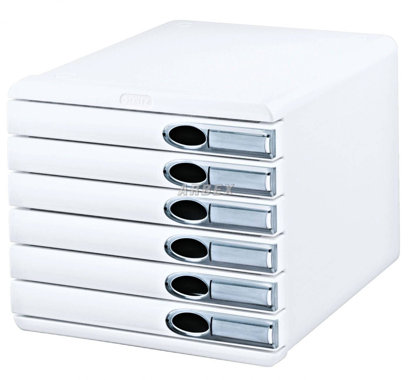 Vyrobený z kvalitního plastu. Možnost stohování (až 3 boxy na sebe). Zásuvky jsou uzavřené. Součástí balení jsou gumové podložky pro lepší stabilitu a ochranu nábytku a popisovatelné papírové štítky. Pro ukládání dokumentů do formátu A4+. Jednoduchý posun zásuvek se zarážkami, proti jejich úplnému vysunutí. Na každé zásuvce výřez pro snadné vysunutí zásuvky. Rozměry: 282 x 255 x 350 mm. 6 zásuvek výšky 32 mm.