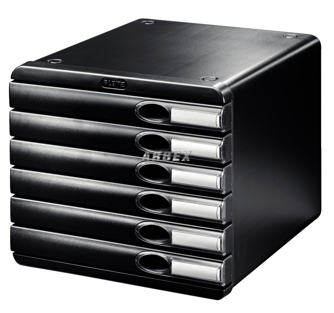 Vyrobený z kvalitního plastu. Možnost stohování (až 3 boxy na sebe). Zásuvky jsou uzavřené. Součástí balení jsou gumové podložky pro lepší stabilitu a ochranu nábytku a popisovatelné papírové štítky. Pro ukládání dokumentů do formátu A4+. Jednoduchý posun zásuvek se zarážkami, proti jejich úplnému vysunutí. Na každé zásuvce výřez pro snadné vysunutí zásuvky. Rozměry: 282 x 255 x 350 mm. 6 zásuvek výšky 32 mm.