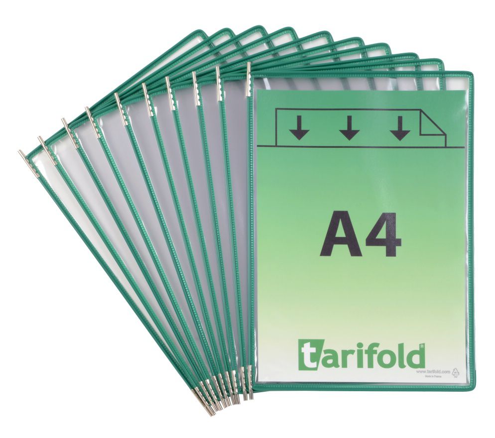 Základní kapsový rámeček sloužící pro přehlednou prezentaci, formát A4, otevřené shora. Každé balení obsahuje ještě 5 ks plastových štítků na popisky, kterými můžete kapsy odlišit. Určeny pro kovové stojany a závěsné držáky Tarifold. Okraje kapes jsou vyztuženy ocelovým drátem potaženým odolným plastem. Barvy: modrá, černá, zelená, žlutá, bílá, červená a mix barev.