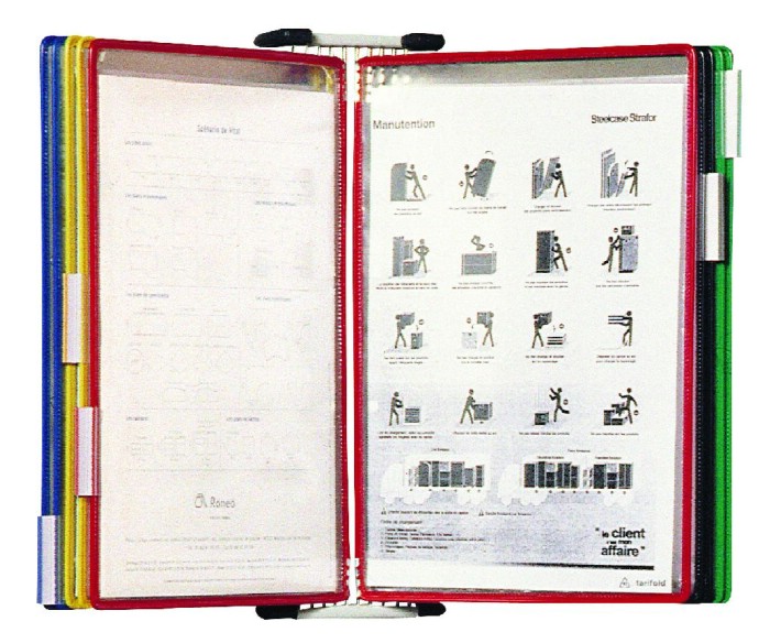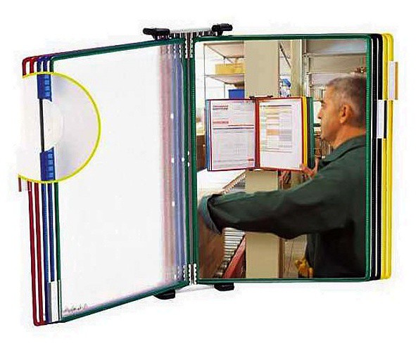 Kovový lakovaný držák pro uchycení 10 kapes s úchyty A4 s orientací na výšku nebo A3 na šířku. Vhodný pro umístění do průmyslových provozů, skladů či obchodů. Držák má 4 aretační zarážky, které zabezpečí uchycení držáku ve správném sklonu a usměrní držení kapes. Lze snadno připevnit na zeď, používá se všude tam, kde je třeba zviditelnit více dokumentů na malém prostoru, například nástěnka, stroj, stěna apod., nově konstruované zarážky zaručují otevření kapes na zvolené straně. Dále je možné kombinovat s kloubovým ramenem, pivorackem, či stolním sloupkem s upínacím svěrákem nebo podstavcem. Součástí balení: nerezové šroubky a hmoždinky. Kapsy s úchyty je nutné dokoupit samostatně. Barva: světle šedá. Pro kapsy A4 - F11400x nebo A3 - F11800x.