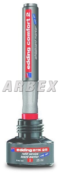 Tabulový popisovač s klínovým hrotem, šíře stopy 1 - 5 mm, inkoust se slabým zápachem. Doba cap-off - lze ponechat několik dní bez nasazeného uzávěru, aniž by hrot zaschl. Pro psaní a značkování na bílých tabulích. Smazatelný za sucha z téměř všech nepórovitých povrchů jako např. email, sklo, melamin. Stálý na světle a rychle zasychající. Bez přídavku butylacetátu. Plastové tělo. Popisovač je znovu naplnitelný inkoustem BTK 25 a BTK100. Vyrábí se v barvách: černá, červená, modrá, zelená, žlutá, oranžová, hnědá, fialová