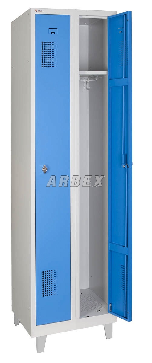 svařovaná 2-dveřová šatní kovová skříň na nožkách,