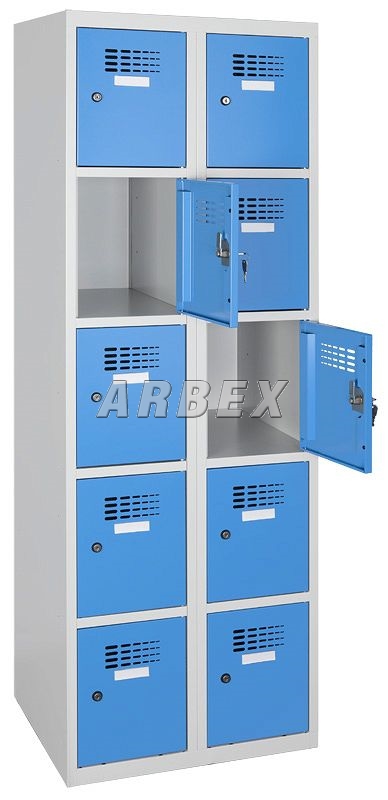 Popis Kovová šatní skříň s 10-ti uzamykatelnými boxy modrá