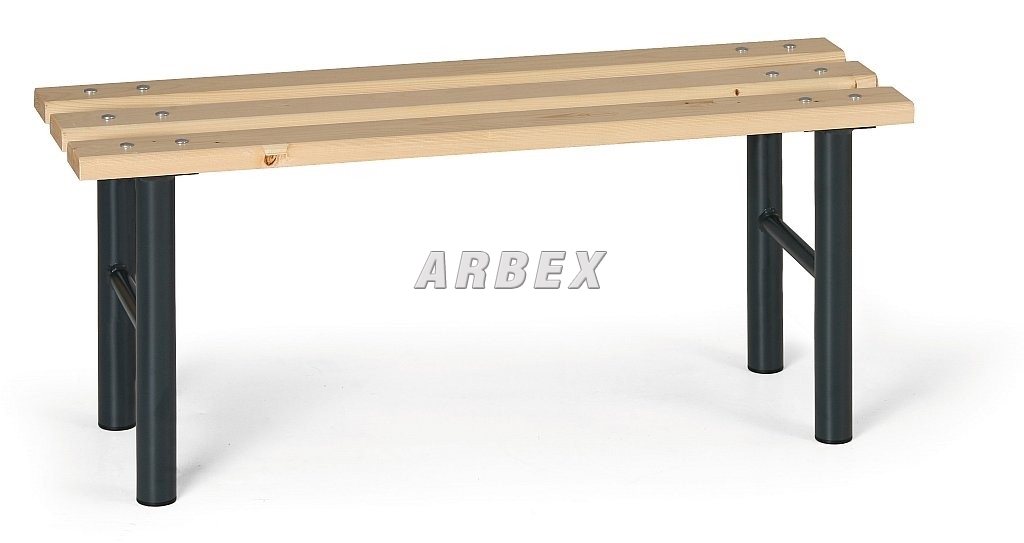 Šatní lavice do šaten, převlíkáren, vhodné i do mírně vlhkého prostředí. Délka lavice je 1 m. Podnoží je z ocelovýc h trubek průměru 40 mm, pro délku 1 m se používají dvě tyto podnoží. Na konci podnoží jsou plastové kluzáky. Povrchová úprava podnoží je práškovým lakem antracit RAL 7016. Sedací plocha je ze smrkových latí o průměru 85 x 24 mm. Povrchová úprava voděodolným transparentním lakem. Lavice se dodávají v demontovaném stavu, lehká a rychlá montáž.