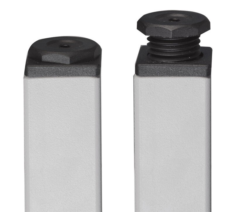 Výztuha z ocelového profilu 30 x 30 mm, nožky se stavěcími šrouby, výškově stavitelné v rozsahu 0-13 mm.