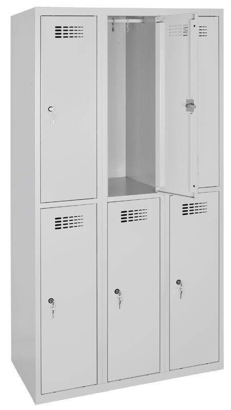 Svařovaný 6-dveřový šatník na soklu.