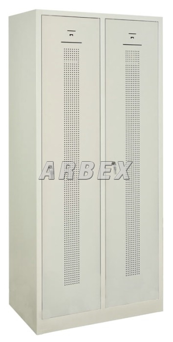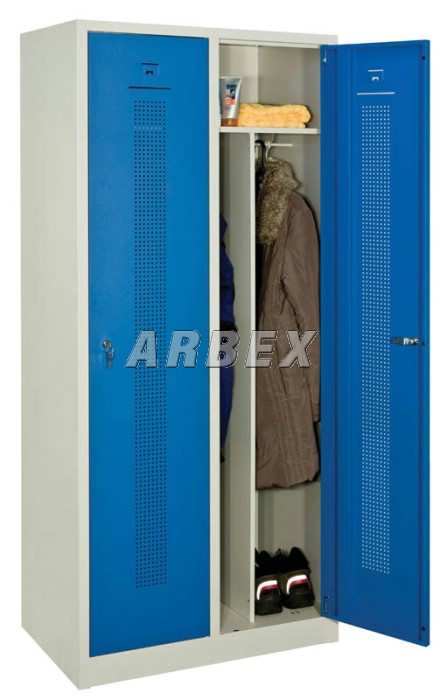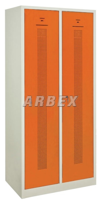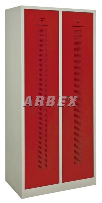 Šatní skříň 2-dveřová 180x80x50 cm s vnitřní přepážkou svařovaný 2-dveřový šatník na soklu s perforovanými dveřmi.