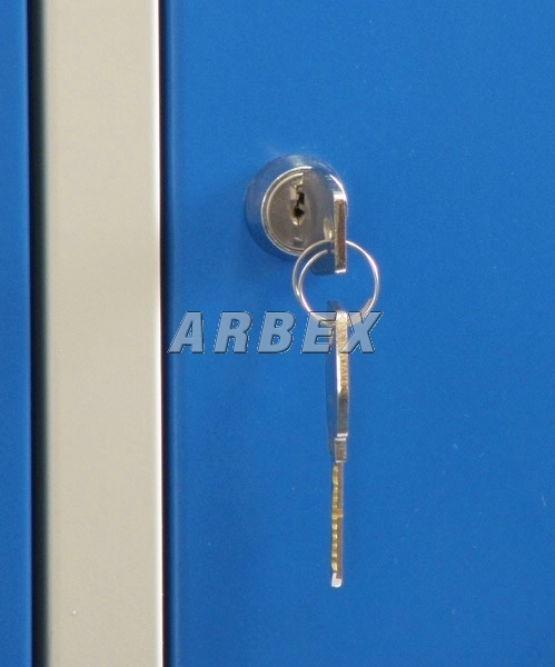 Uzamykání - tříbodový rozvorový mechanismus uzavírající dveře do boku, horního víka a dna skříně + cylindrický zámek se 2 klíči vhodný pro generální klíč anebo otočný uzávěr s pojistkou pro visací zámek - doporučený průměr třmene zámku = 6-7 mm.