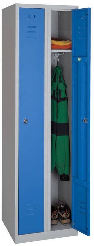 Svařovaný 2-dveřový šatník na soklu.
