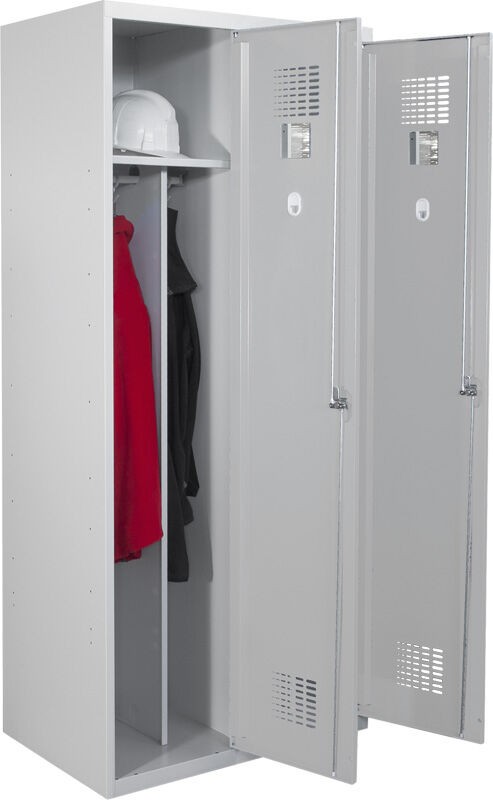 Svařovaný 2-dveřový šatník na soklu.
