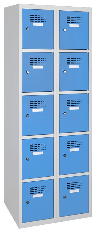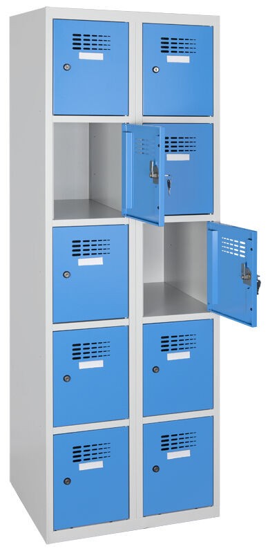 Svařovaná šatní skříň s 10-ti uzamykatelnými boxy pro osobní věci zaměstnanců.
