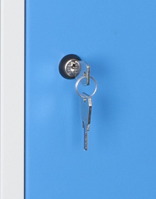 Povrchová úprava práškovým vypalovaným lakem, barva korpus/dveře šedá/modrá RAL 7035/5012.