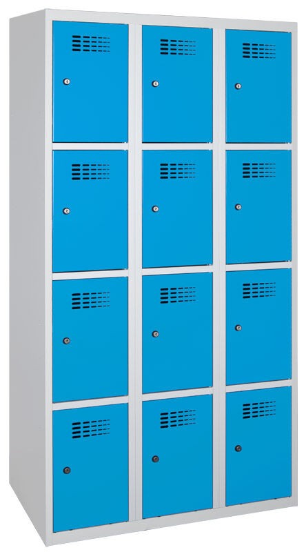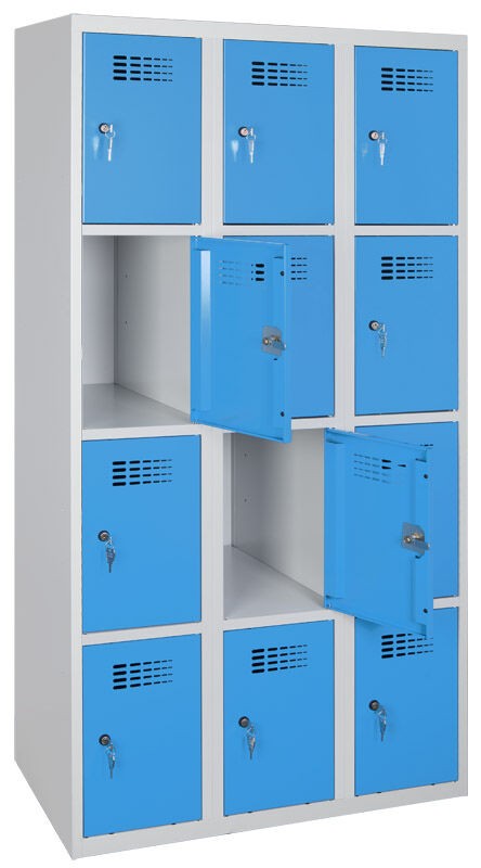 Svařovaná šatní skříň s 12-ti uzamykatelnými boxy pro osobní věci zaměstnanců.