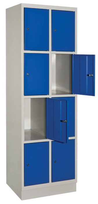 Popis Kovová šatní skříň s 8-mi uzamykatelnými boxy modrá