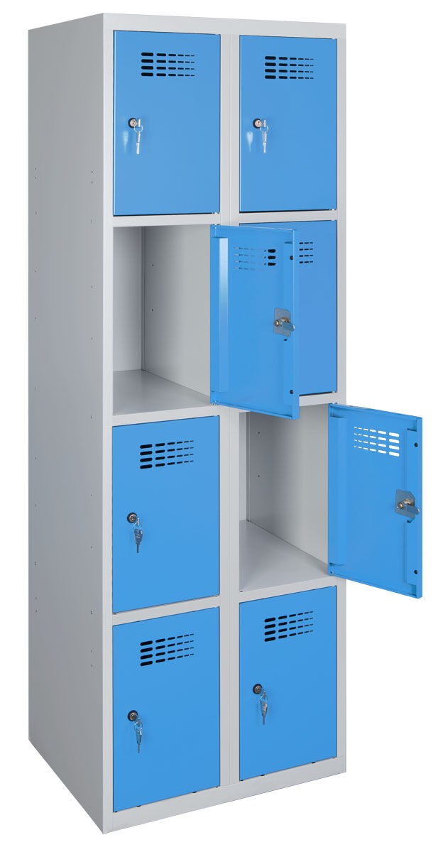 Svařovaná šatní skříň s 8-mi uzamykatelnými boxy pro osobní věci zaměstnanců.