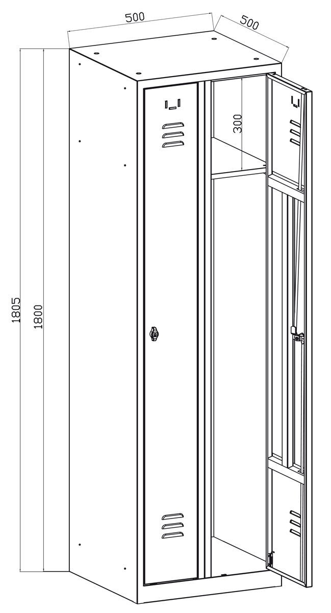 Popis Šatní skříň svařovaná 1800x500x500 mm, cylindrický zámek